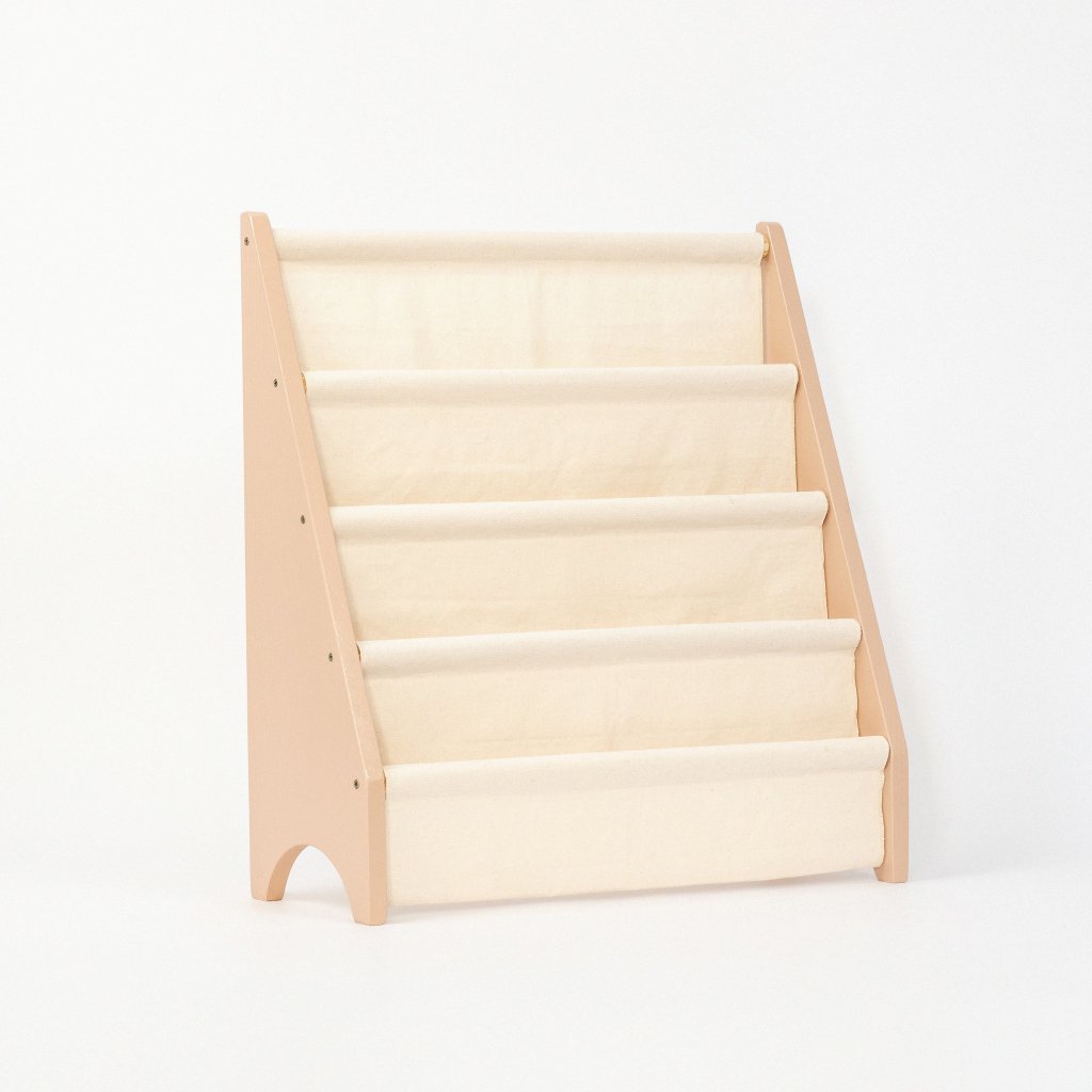 Rack Porta Livros Infantil, Standbook Montessoriano 4 Bolsos areia fofa