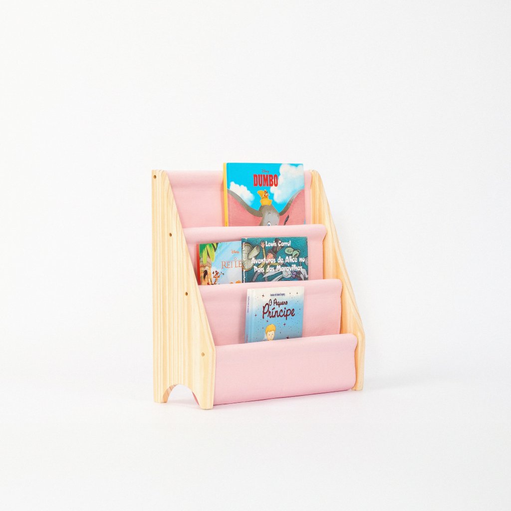 Rack Porta Livros Infantil, Standbook Montessoriano Mini rosa