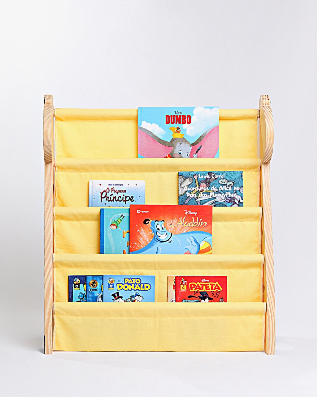 Projetado para que as crianças tenham fácil acesso aos seus livrinhos favoritos, ele é feito de madeira resistente e sem nós, conta com bolsos em lona de tecido, proporcionando um armazenamento seguro e prático.