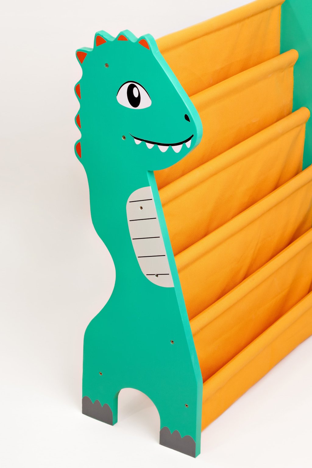 Rack para Livros Infantil Standbook Dinossauro Verde e Amarelo vivo