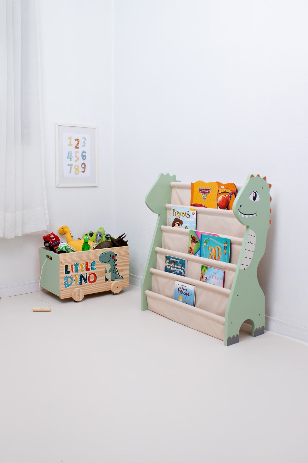 Rack para Livros Infantil Standbook + Caixa de Brinquedos Dinossauro Verde organico