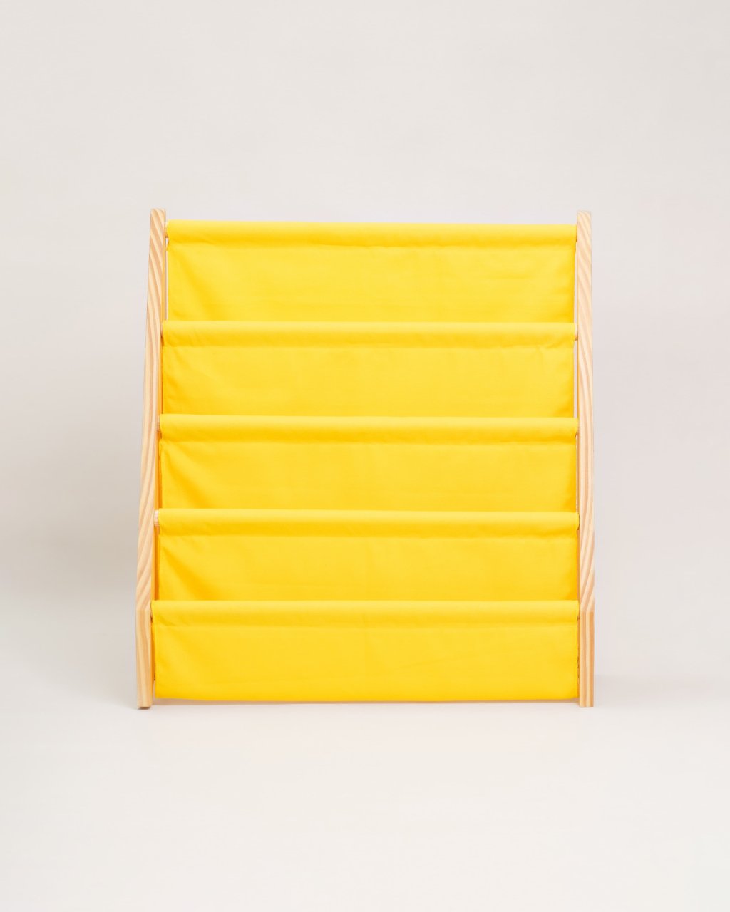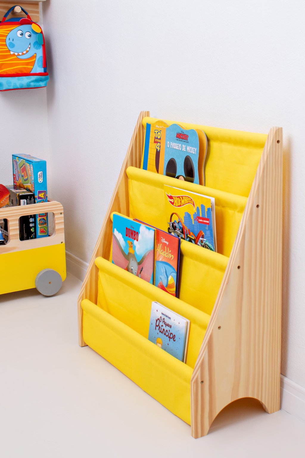 Rack Porta Livros Infantil, Standbook Montessoriano 4 Bolsos Amarelo vivo