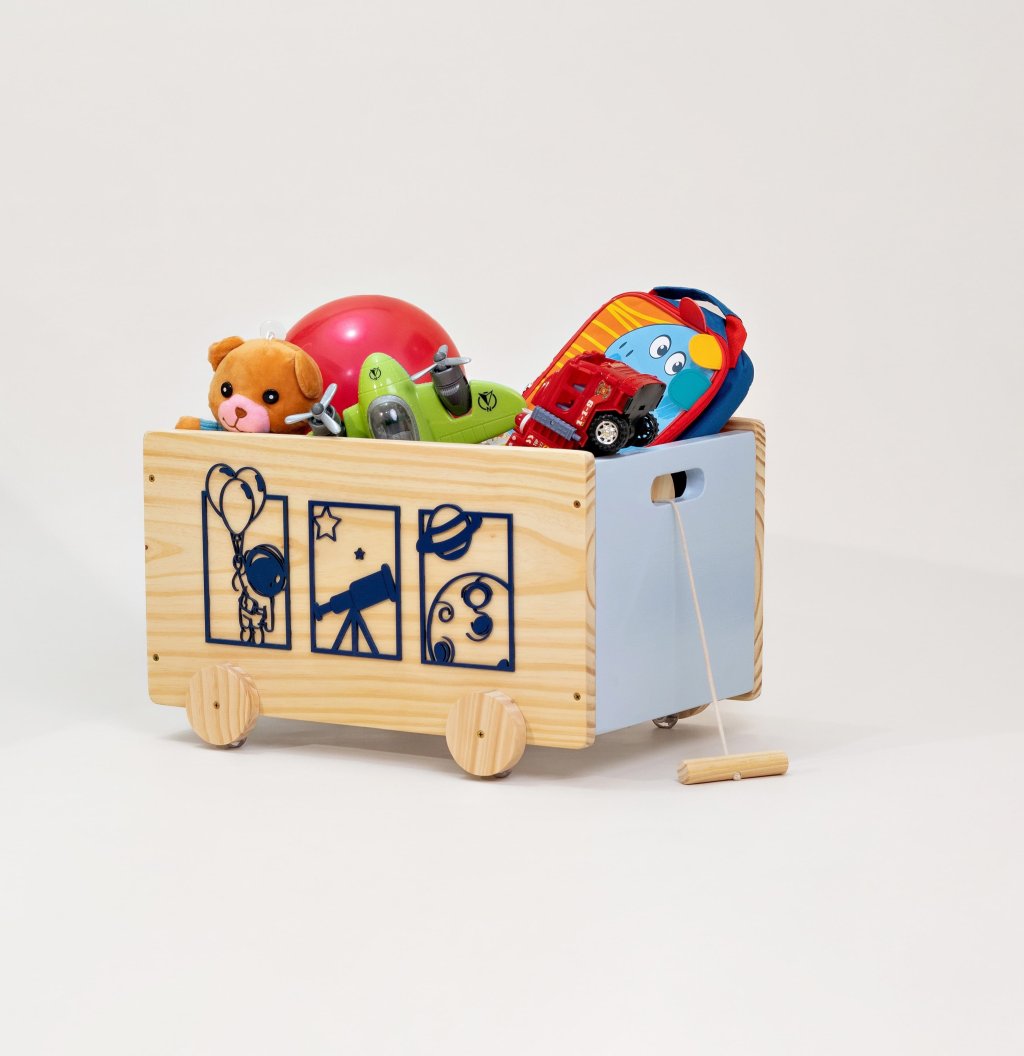 Caixa de Brinquedos com Rodinhas e Puxador o pequeno Astronauta