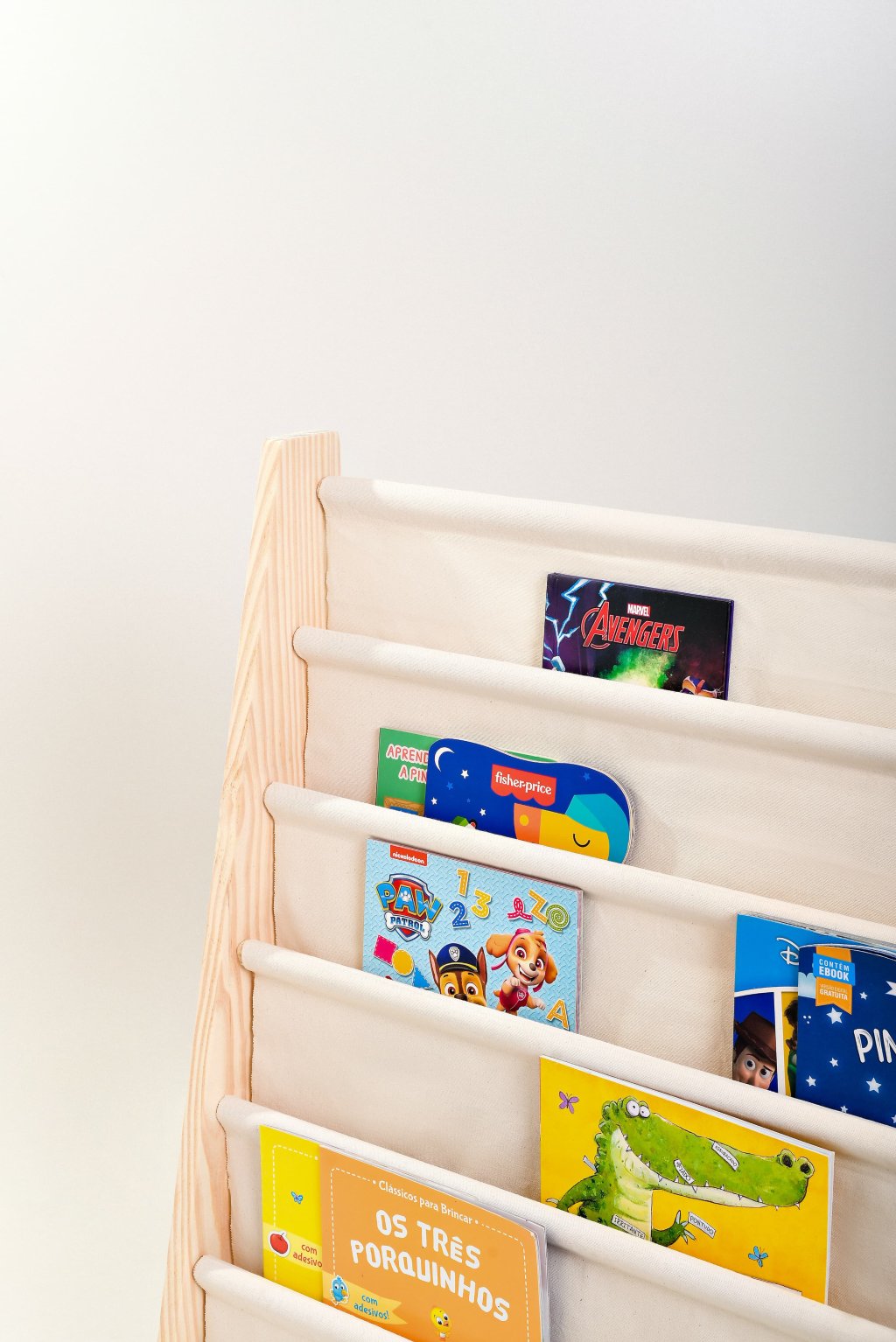 Rack Porta Livros Infantil, Standbook Montessoriano 6 Bolsos crú