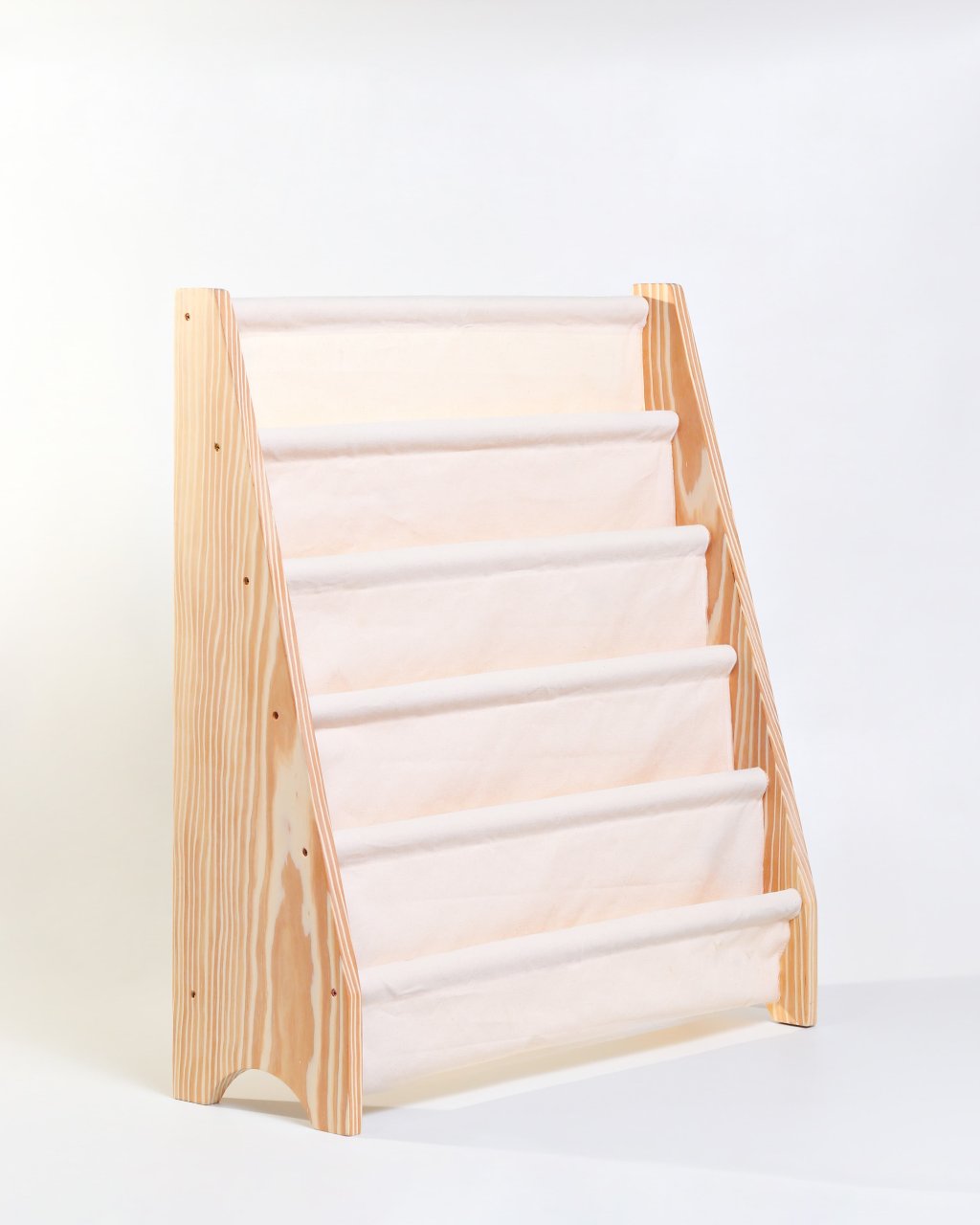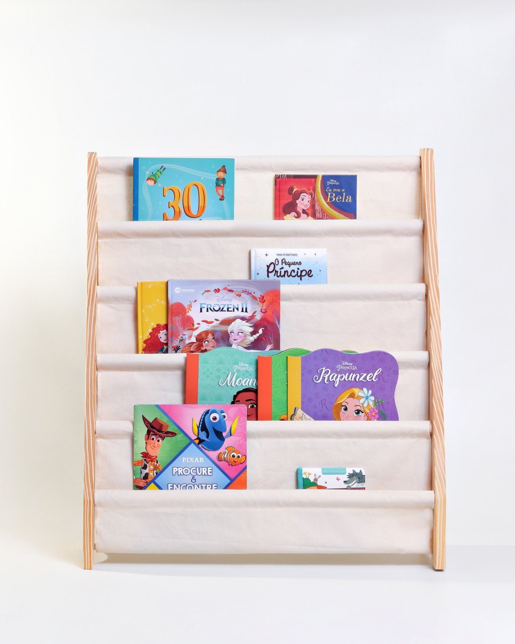Rack Porta Livros Infantil, Standbook Montessoriano 5 Bolsos crú