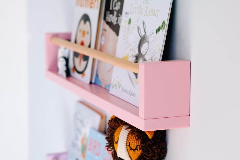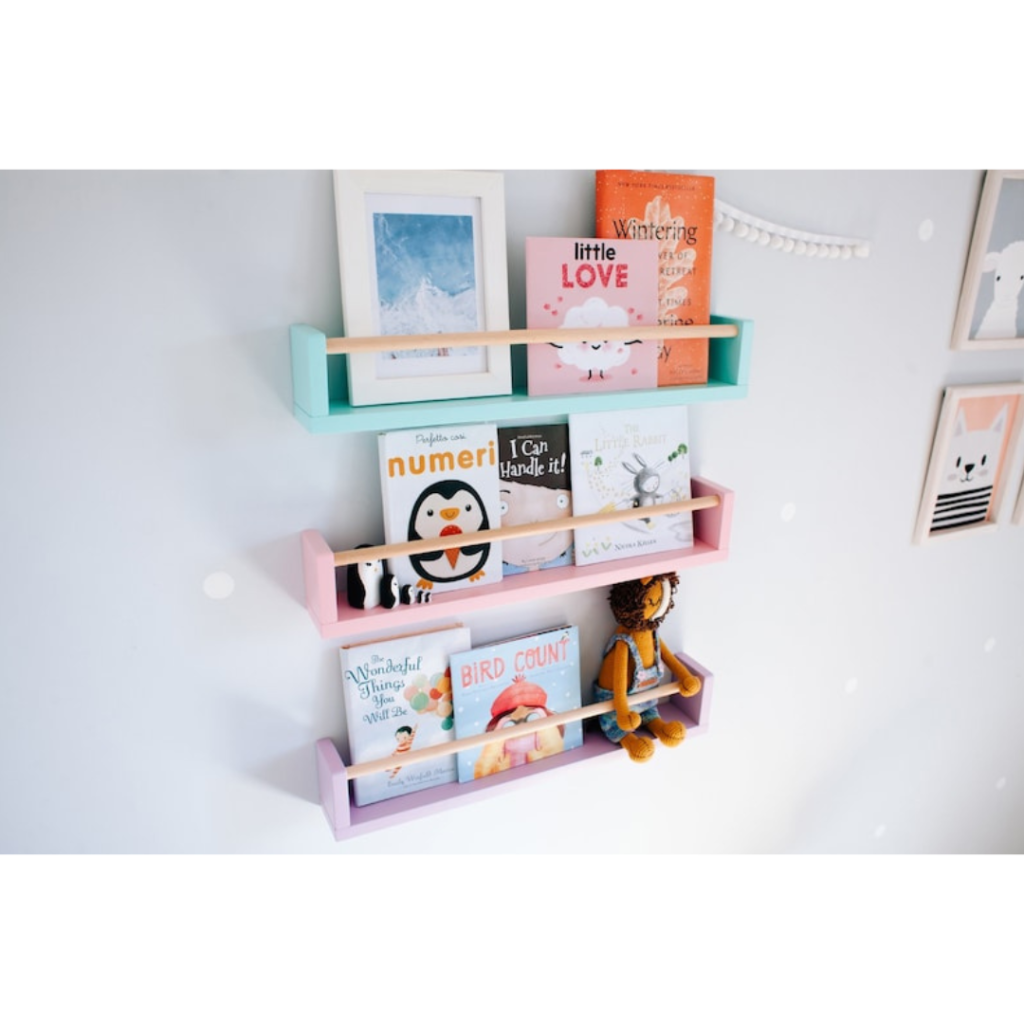 Ideal para criar um ambiente lúdico criativo organizado e estimulante, estes prateleiras ficam lindas na parede, as capas dos livros amostra ajudam a estimular os pequenos a pegarem o gosto pela leitura.