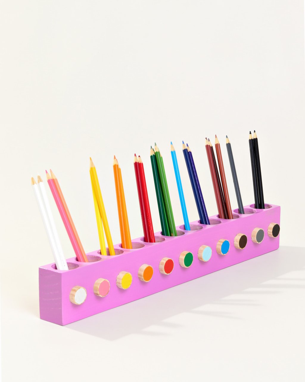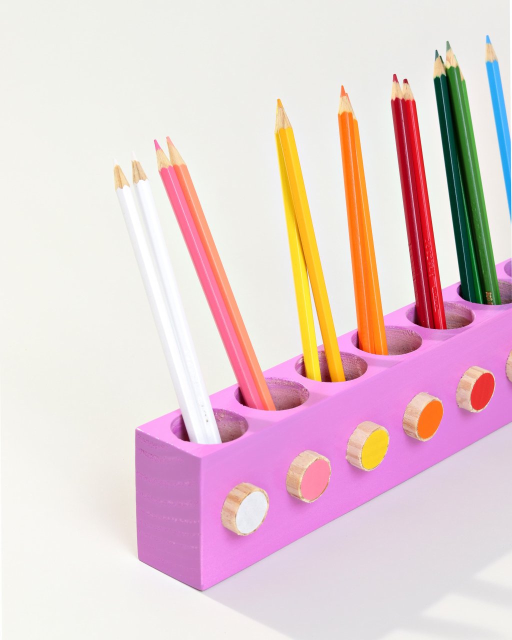 O design Simples e minimalista, compacto para que as crianças possam alcançar facilmente todos os lápis sem a ajuda de um adulto.
