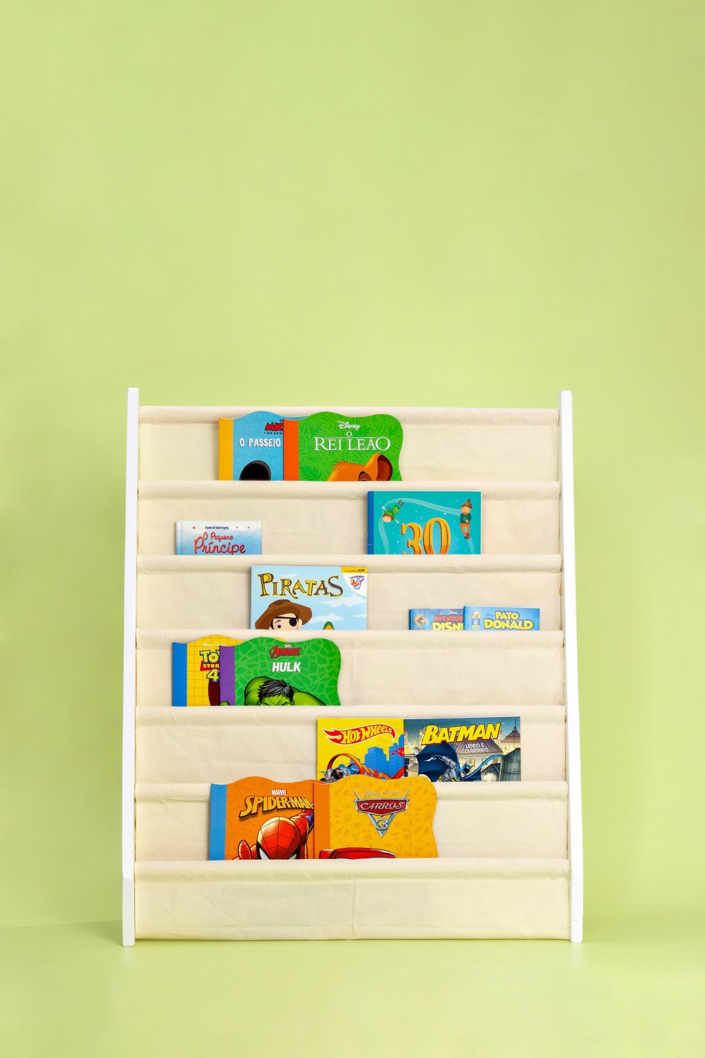 Rack Porta Livros Infantil, Standbook Montessoriano 6 Bolsos , branco