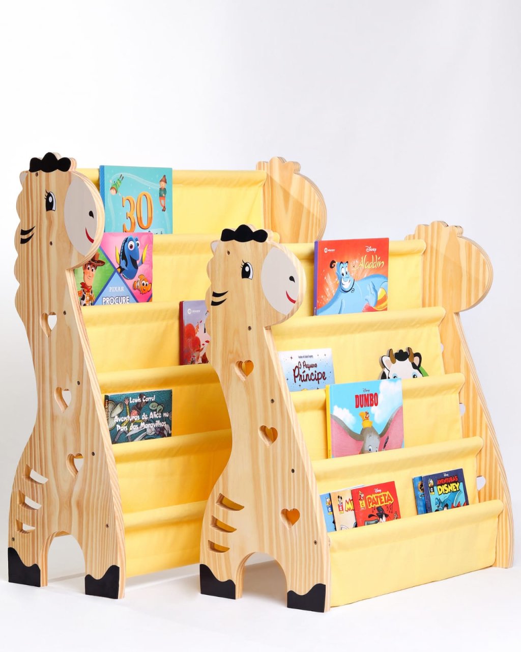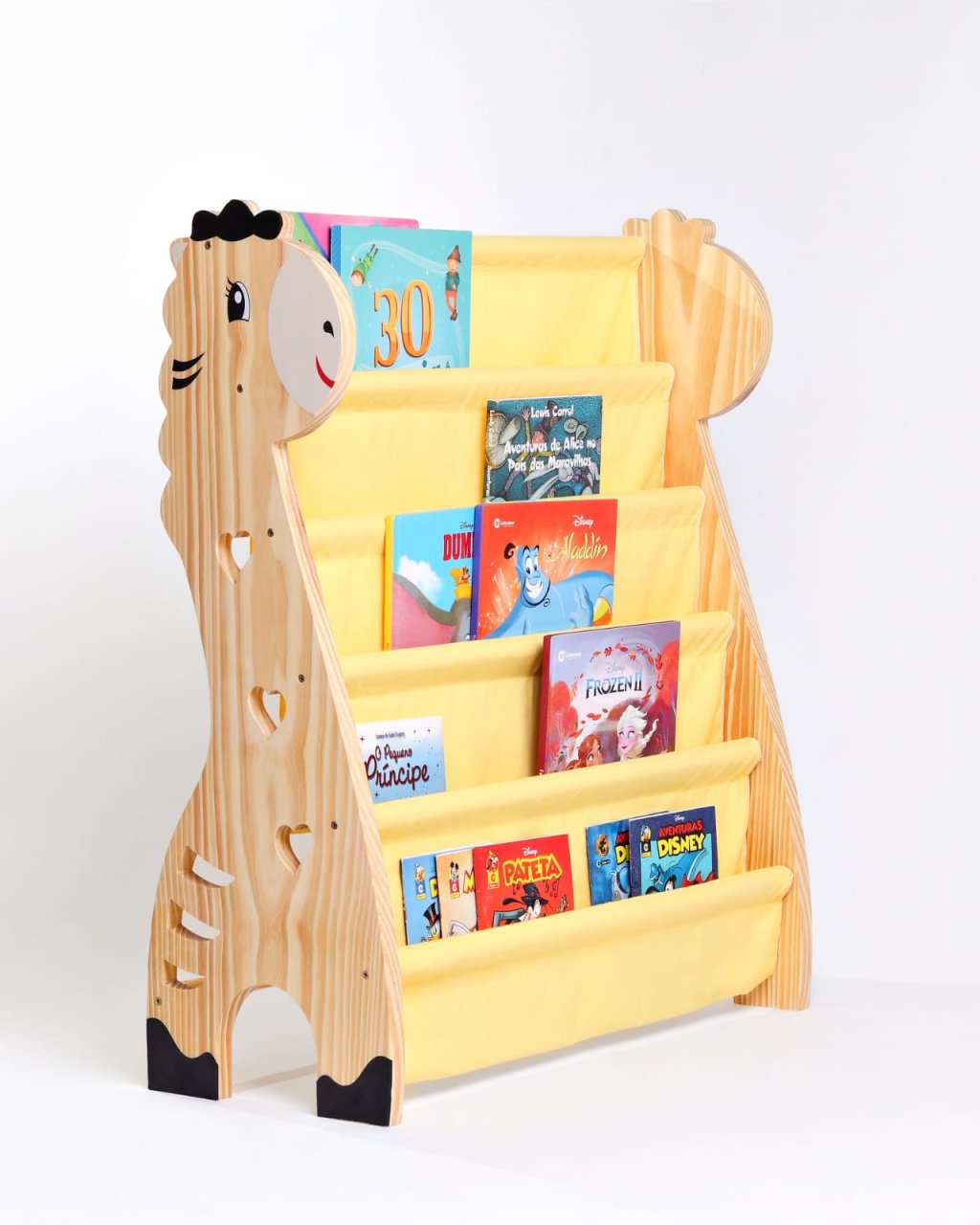 Rack Para Livros Infantil, Bookshelf Girafinha Amarelo pastel 5 Bolsos