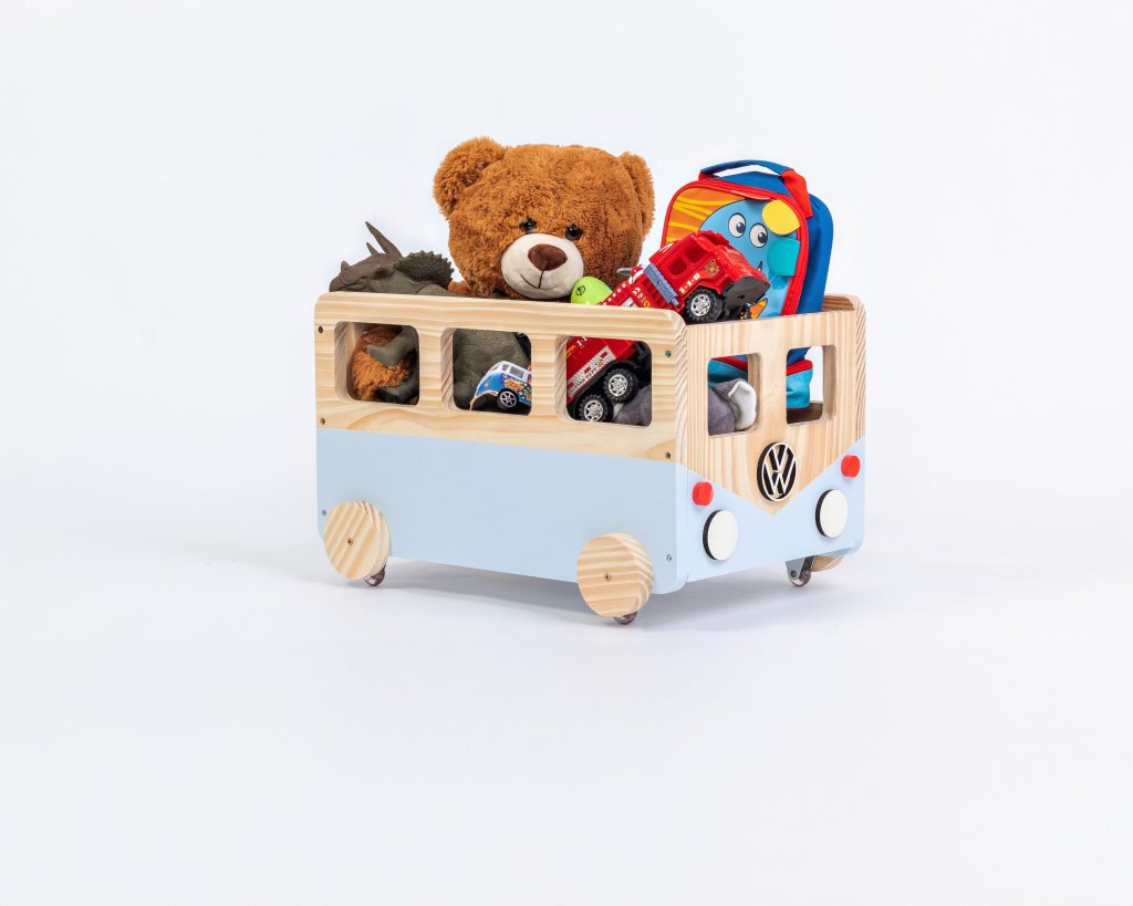 Caixa De Brinquedos Kombinha, Guarda Brinquedos C/ Rodinhas
