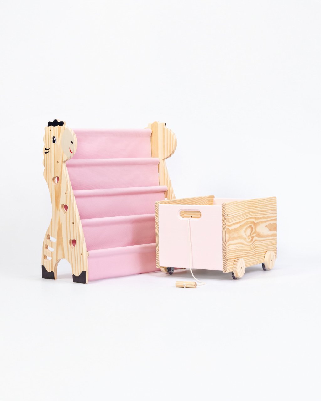 Kit Infantil Organização & Diversão – Rack para Livros Girafa + Caixa de Brinquedos com Rodinhas Personalizável