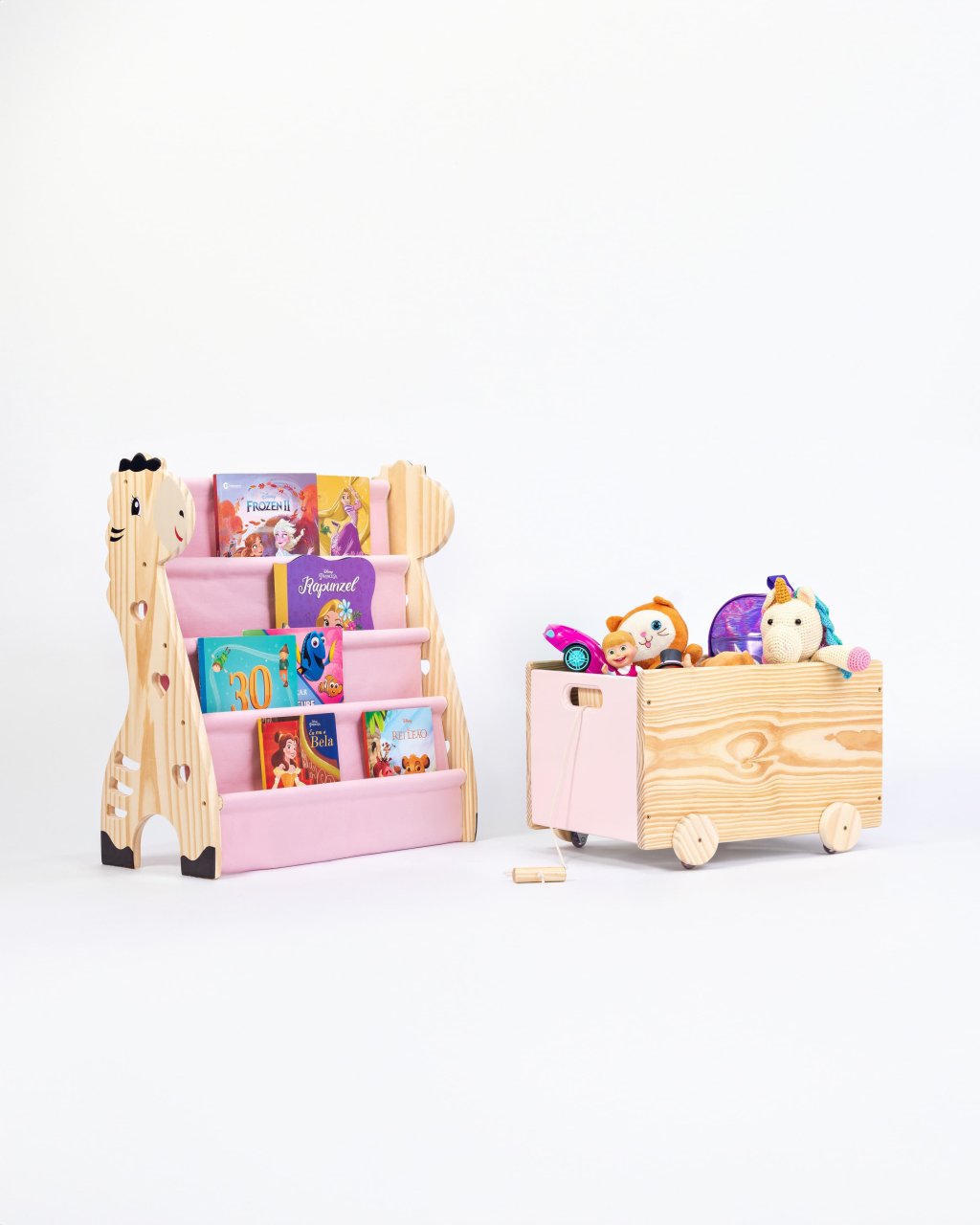 Organizar o quarto das crianças pode (e deve) ser uma atividade divertida! Pensando nisso, criamos um kit especial que une dois produtos funcionais e lúdicos: o Rack para Livros Montessori em formato de Girafa e a Caixa de Brinquedos com Rodinhas Personalizável.