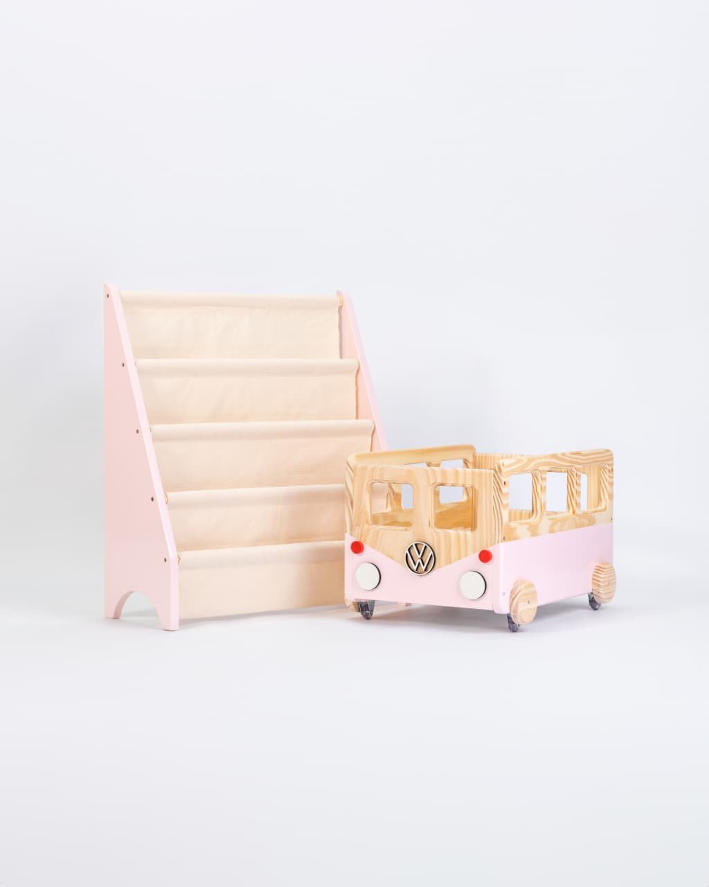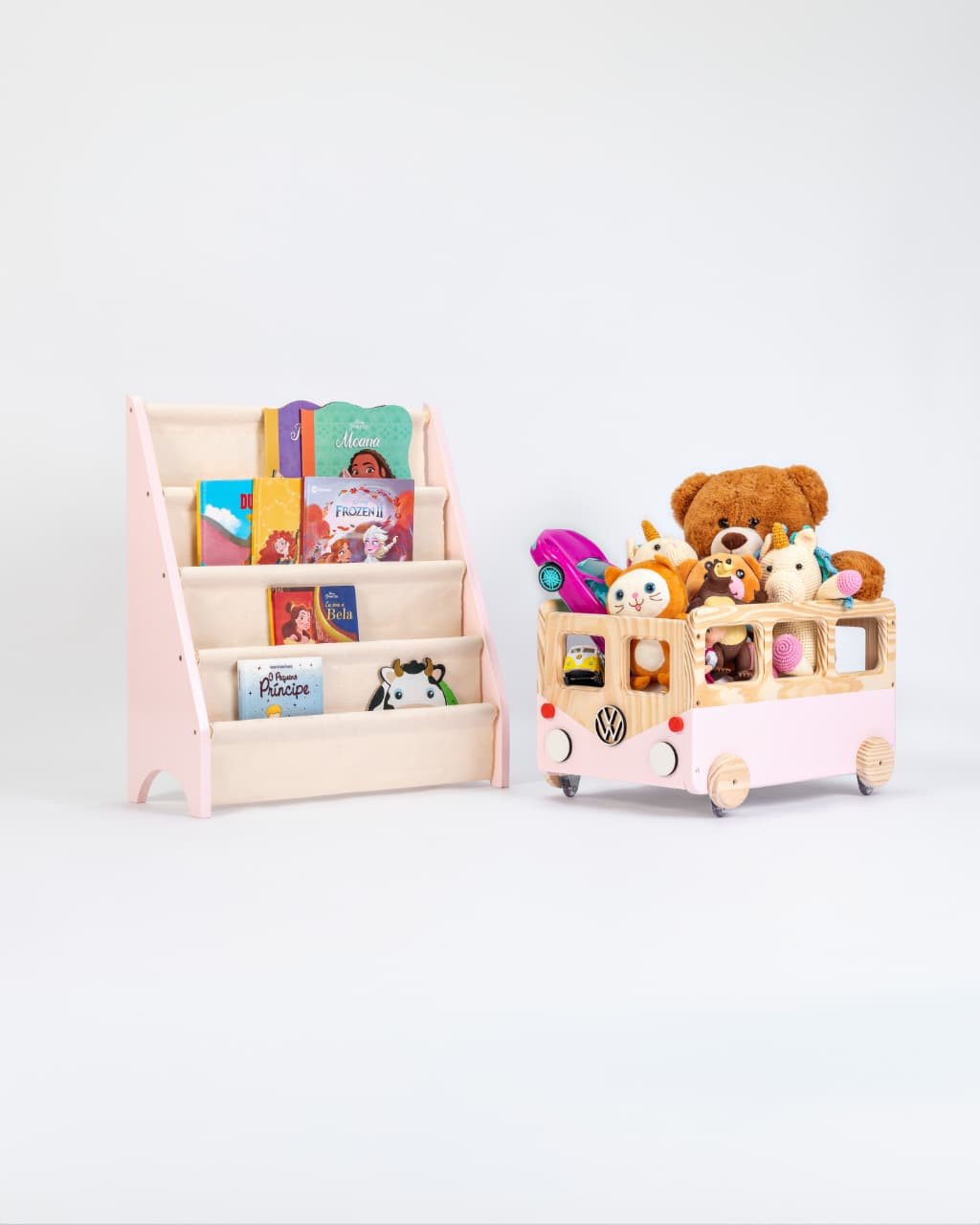 Kit Brinquedoteca Montessori, Rack Livros + Caixote Kombi