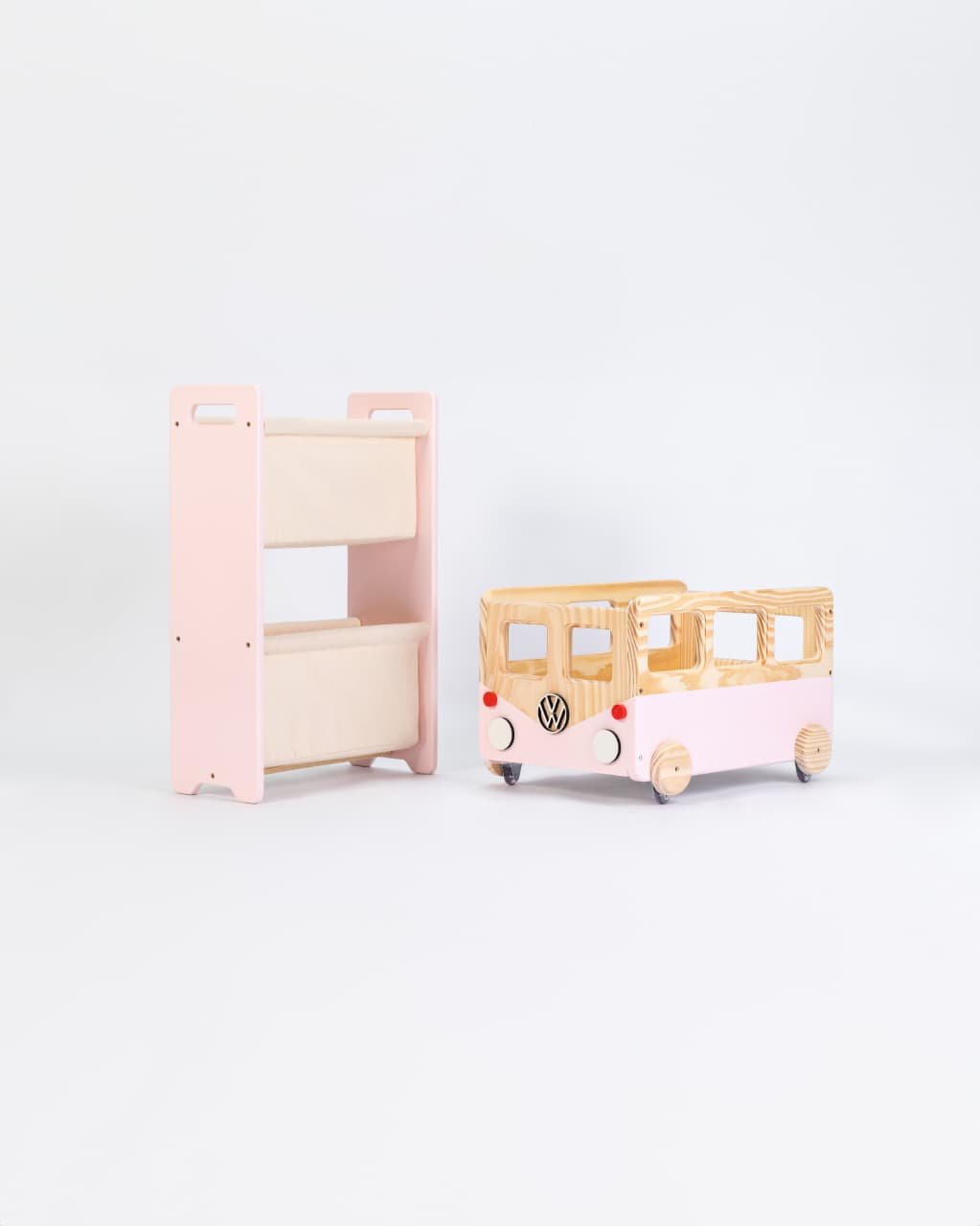Kit Montessori Rack Pocket + Caixote Kombi Rosa Candy
