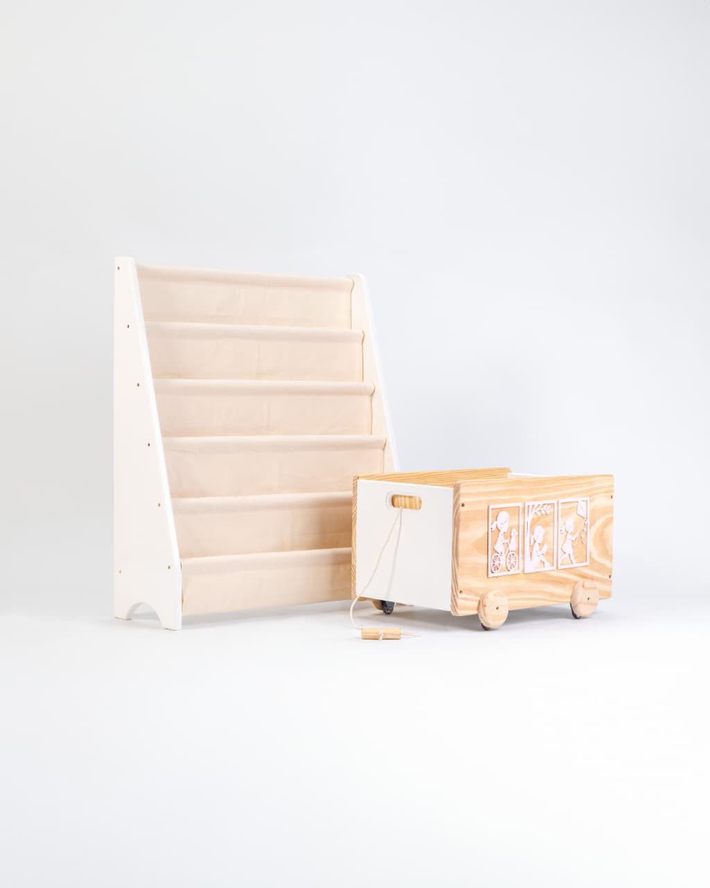 Kit de Organizadores Montessori – Rack para Livros + Caixa de Brinquedos com Tema Infantil