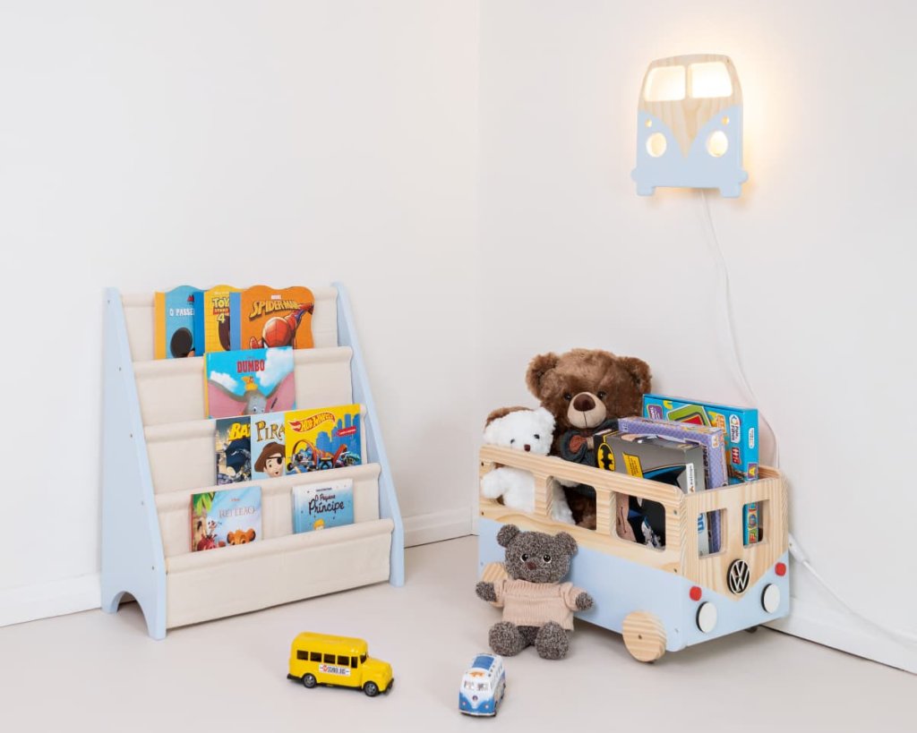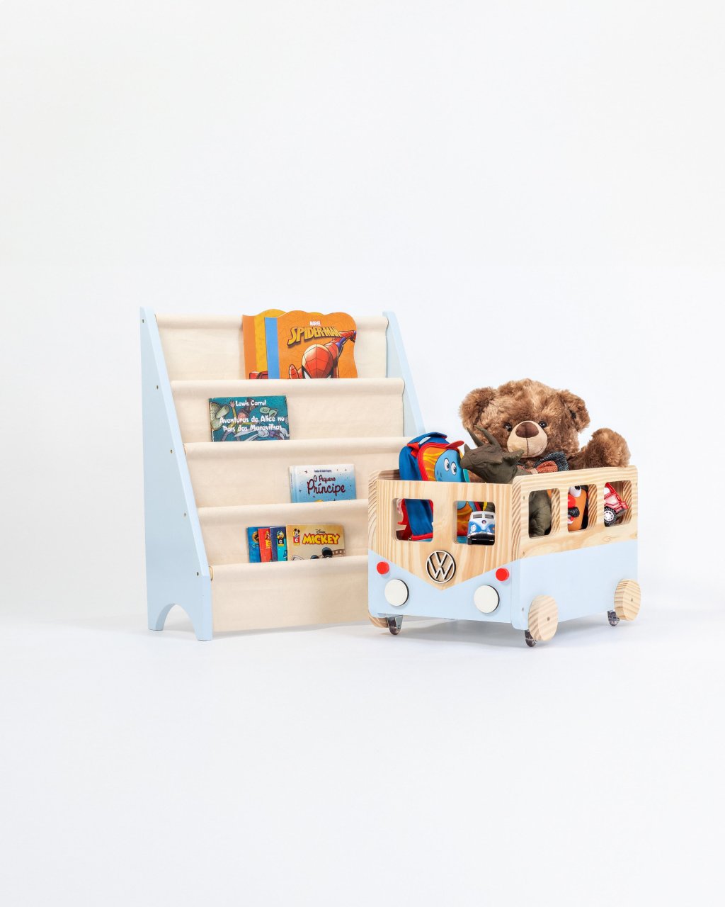 Transforme o quartinho das crianças em um espaço organizado, lúdico e cheio de estilo com o Kit Kombi Azul Céu – Coleção Candy Colors.