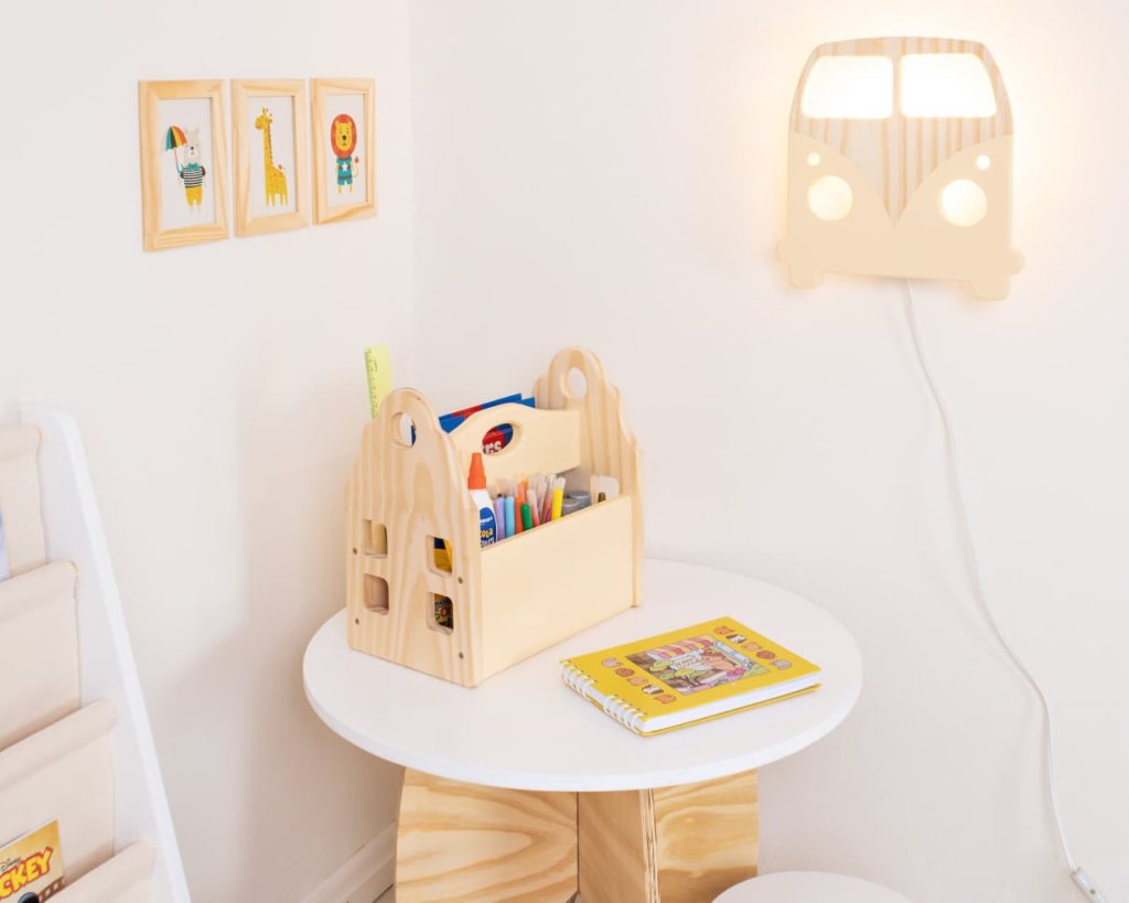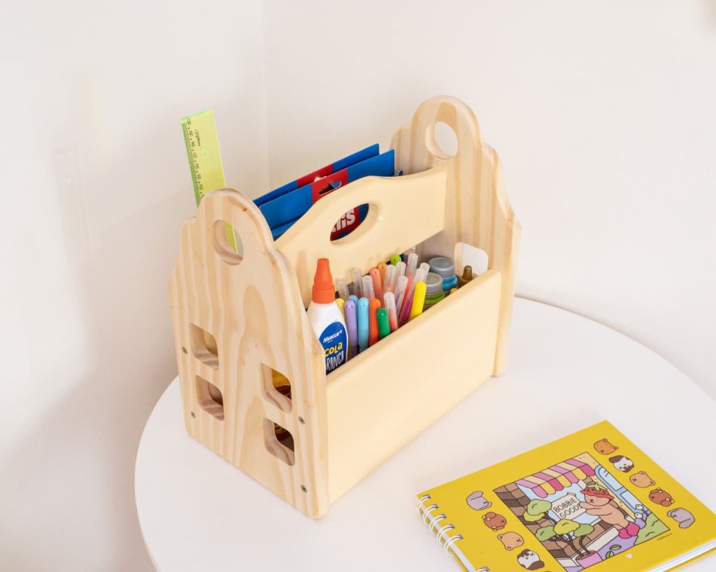 Prática e versátil, pode ser usada como mini estante para livros, caixa de brinquedos ou até mesmo como baú de descobertas. Graças à alça embutida, é fácil de transportar de um ambiente a outro, ajudando a manter tudo no lugar de forma simples e divertida.