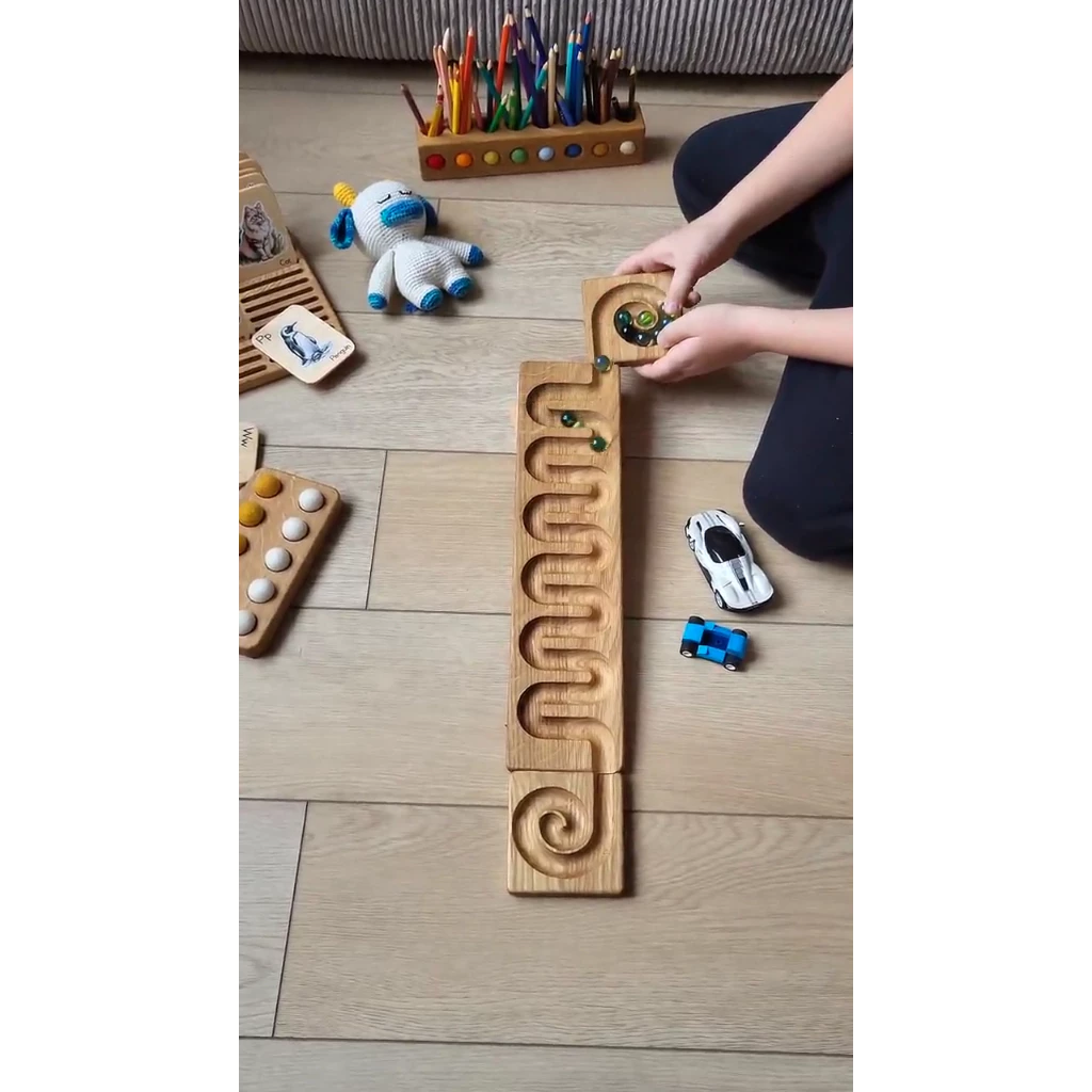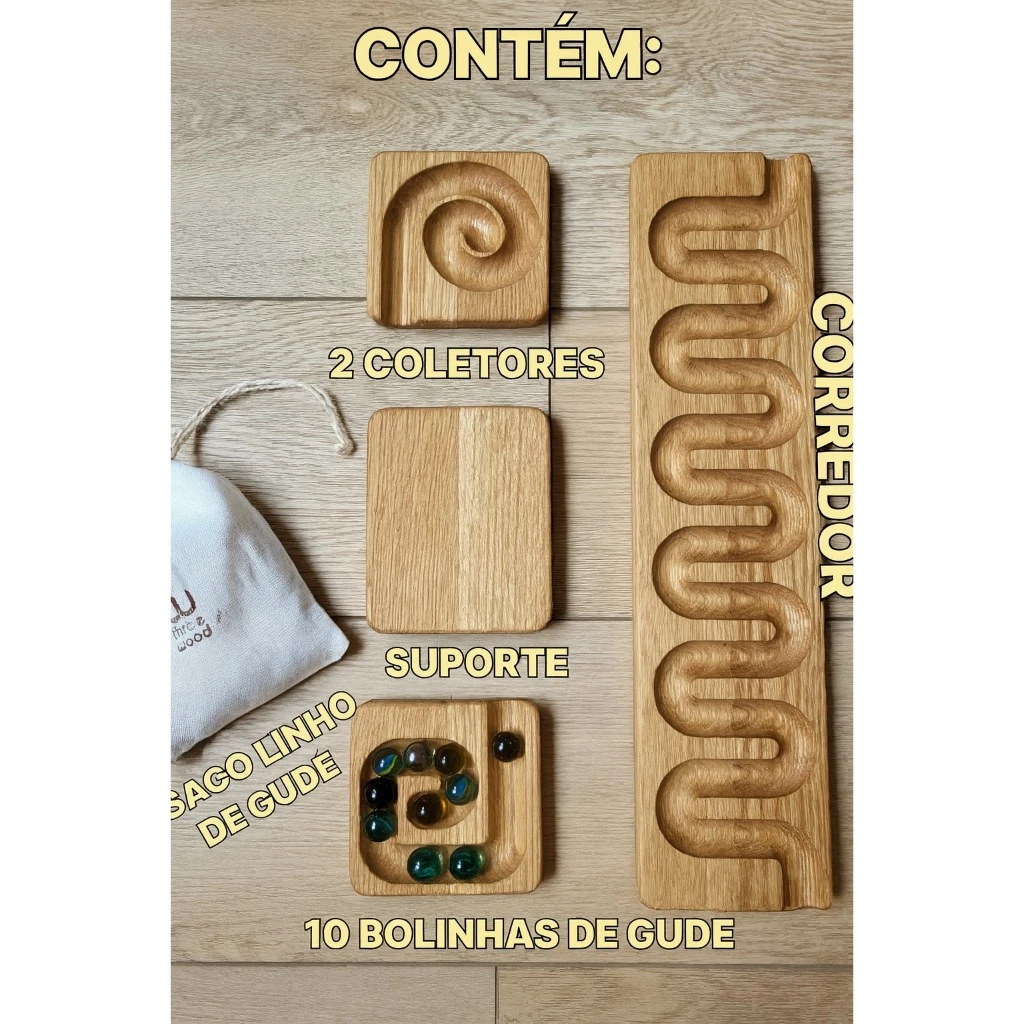 Pista De Bolinhas De Gude Em Madeira Brinquedo Sensorial- River